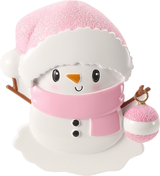 Baby Snowman with Ornament Personalized Ornament: Pink