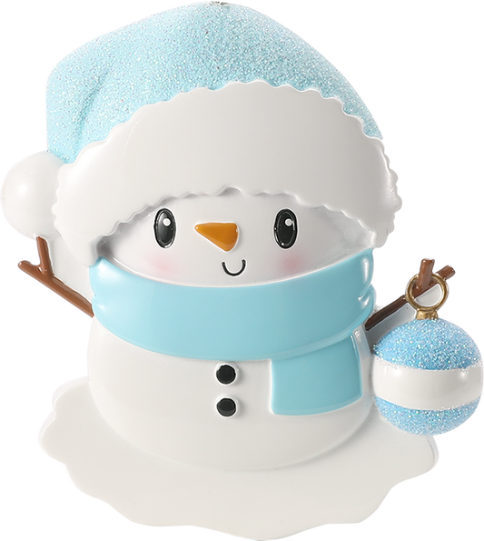 Baby Snowman with Ornament Personalized Ornament: Blue