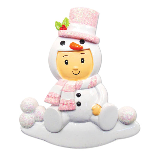 Baby Snowman with Ornament Personalized Ornament: Pink