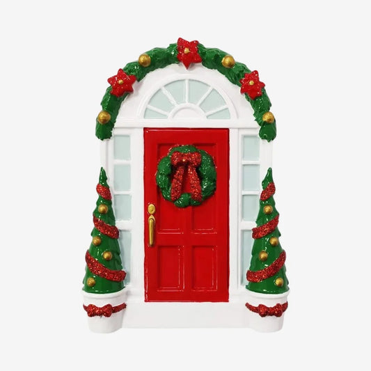 Red Door with Ho Ho Ho Decoration Personalized Ornament