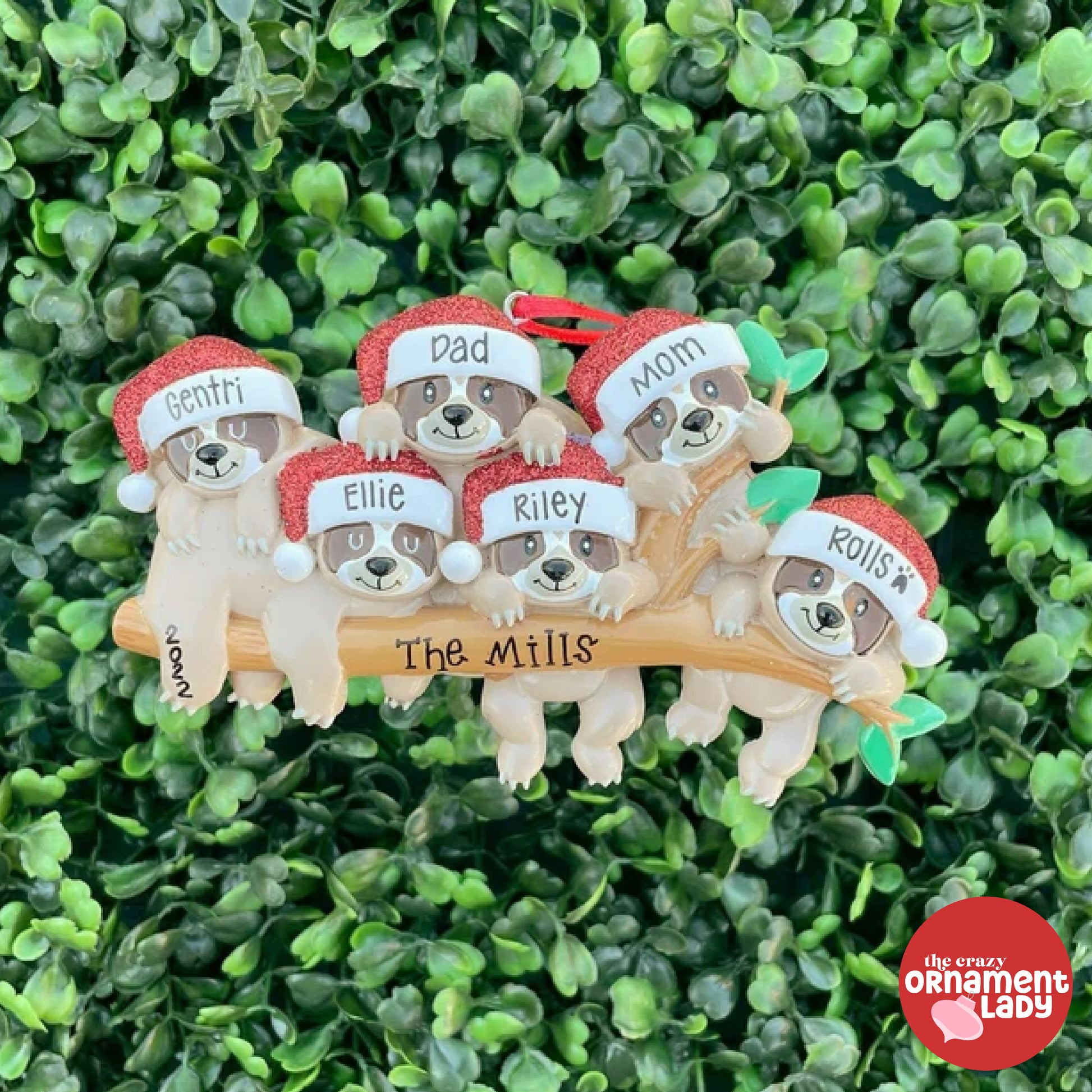 These sloths are ready for the Christmas season, wearing Santa hats that are ready to be personalized for each person in your family of six. Let the cuteness overload commence!