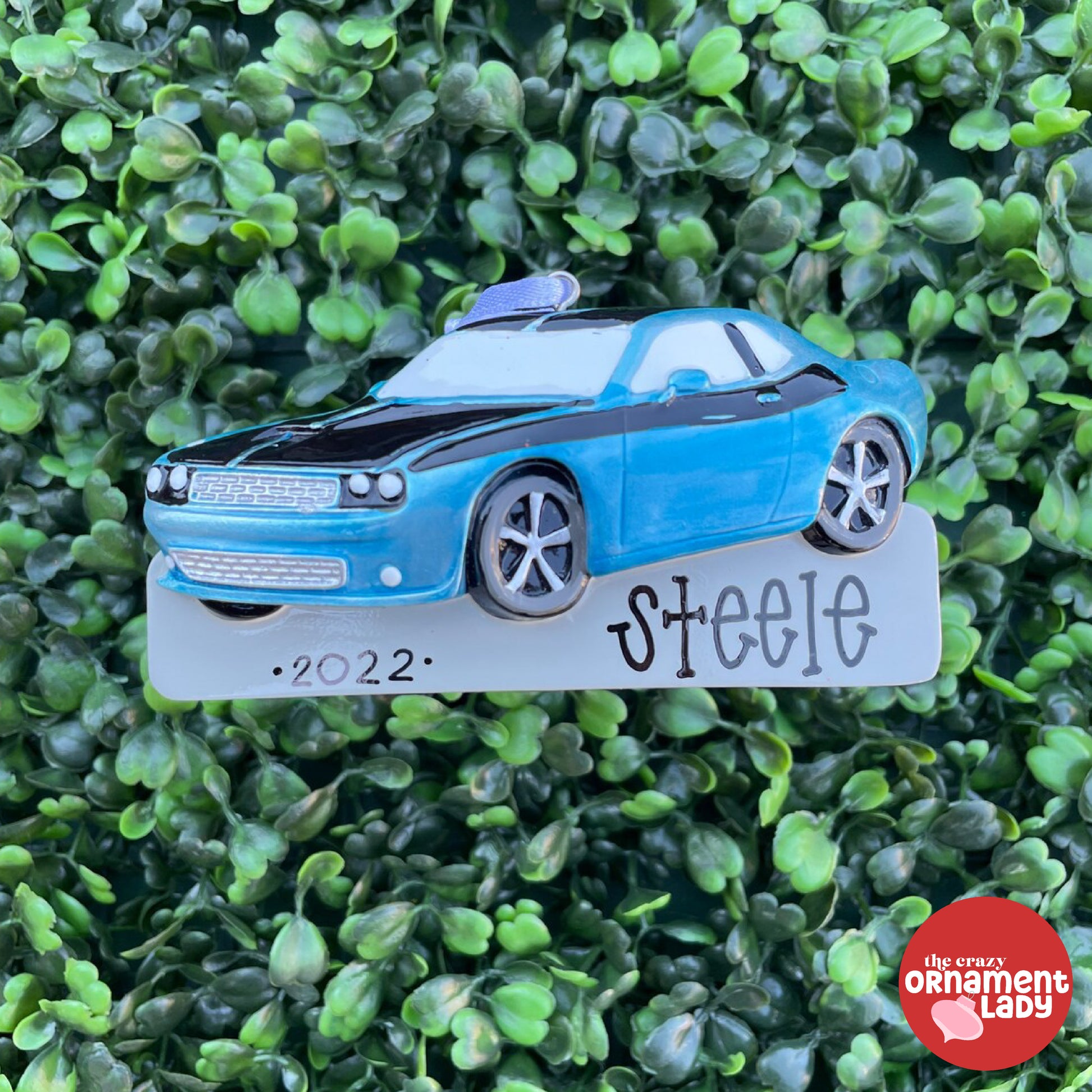 This Christmas ornament features a classic blue muscle car, perfect for car enthusiasts or anyone who loves a unique twist on holiday decor. Make it even more special by personalizing with a name or special event.