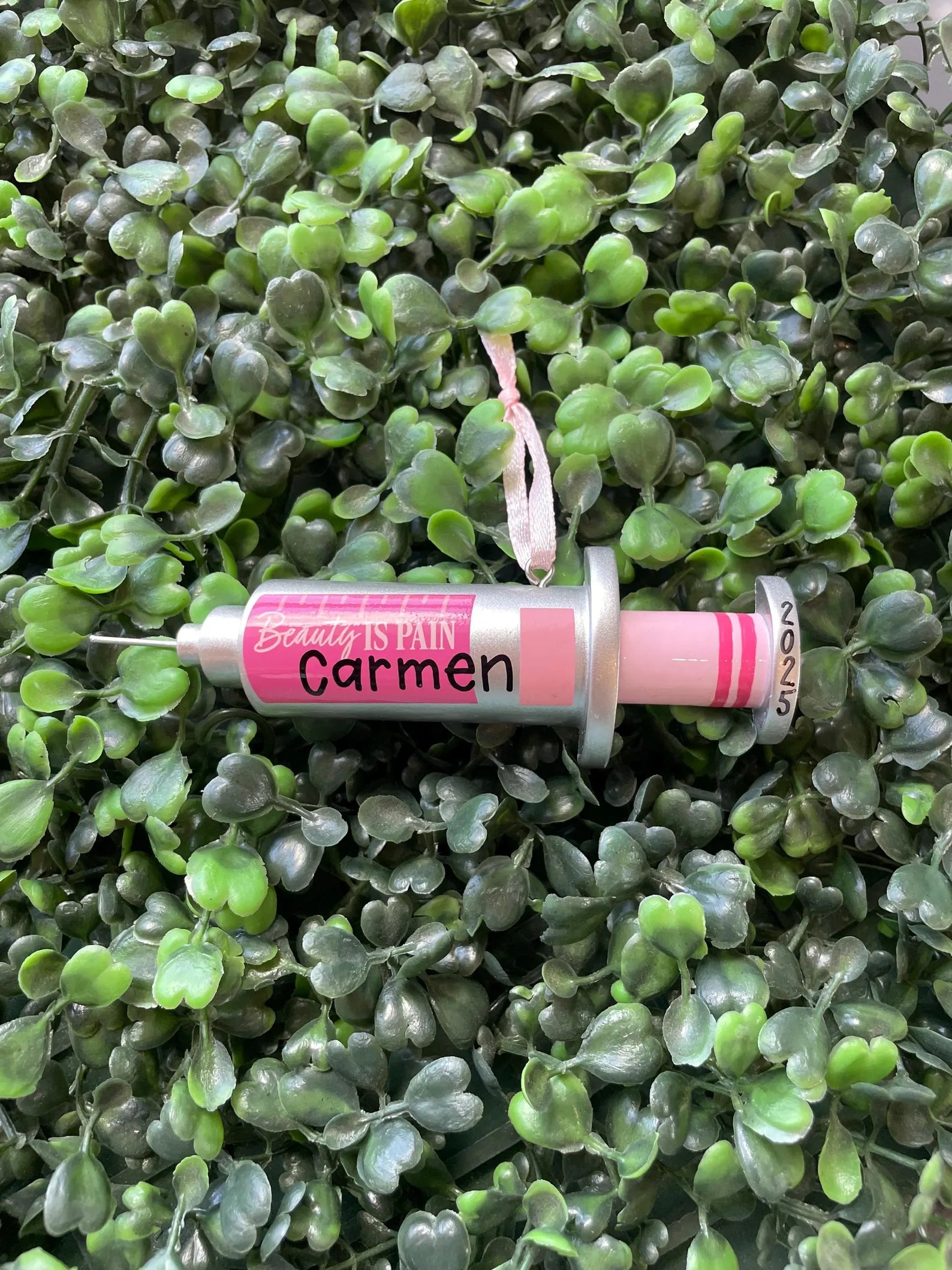 Celebrate your love for beauty and a little extra sass with the Botox Beauty is Pain Personalized Ornament. This playful decoration is perfect for adding a touch of cheeky charm to your holiday tree or vanity space. Customized just for you, it embraces the fun side of self-care with a wink and a grin. Whether gifted to a beauty lover or kept as a personal statement, this ornament brings personality and playful elegance to any setting. Let your holiday décor reflect your style with this unique, personalized keepsake!