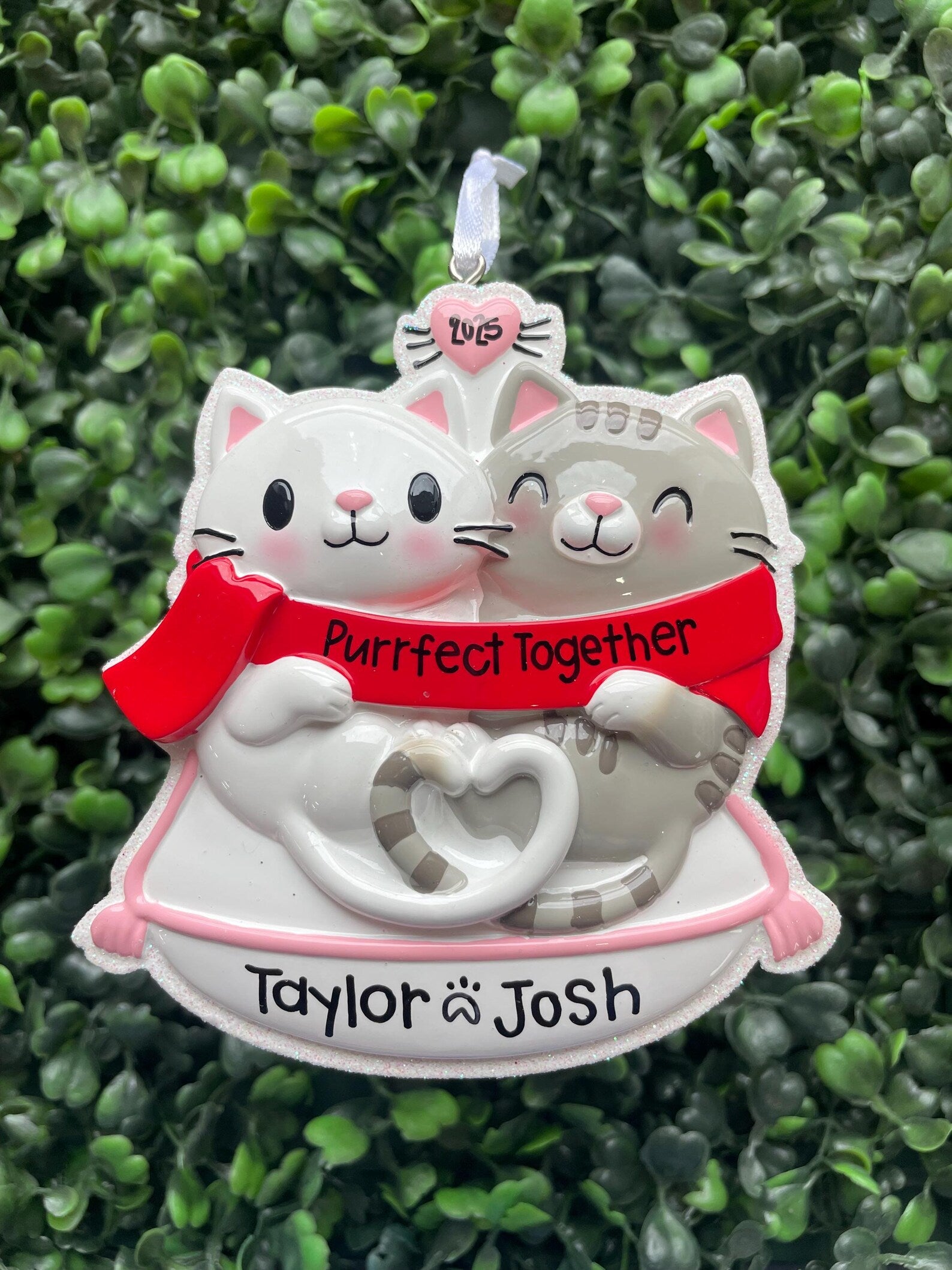 Celebrate the purr-fect bond with this Cat Couple Personalized Ornament! Designed for feline lovers, it captures the playful charm of a loving cat duo, making it a whimsical addition to your holiday decor. Personalize it to showcase your favorite cat names or a special message, turning this ornament into a treasured keepsake. Ideal for gifting or adding a touch of kitty magic to your tree, this ornament brings joy and warmth with every glance. Let your holiday sparkle with the mischievous spirit of your feline friends!