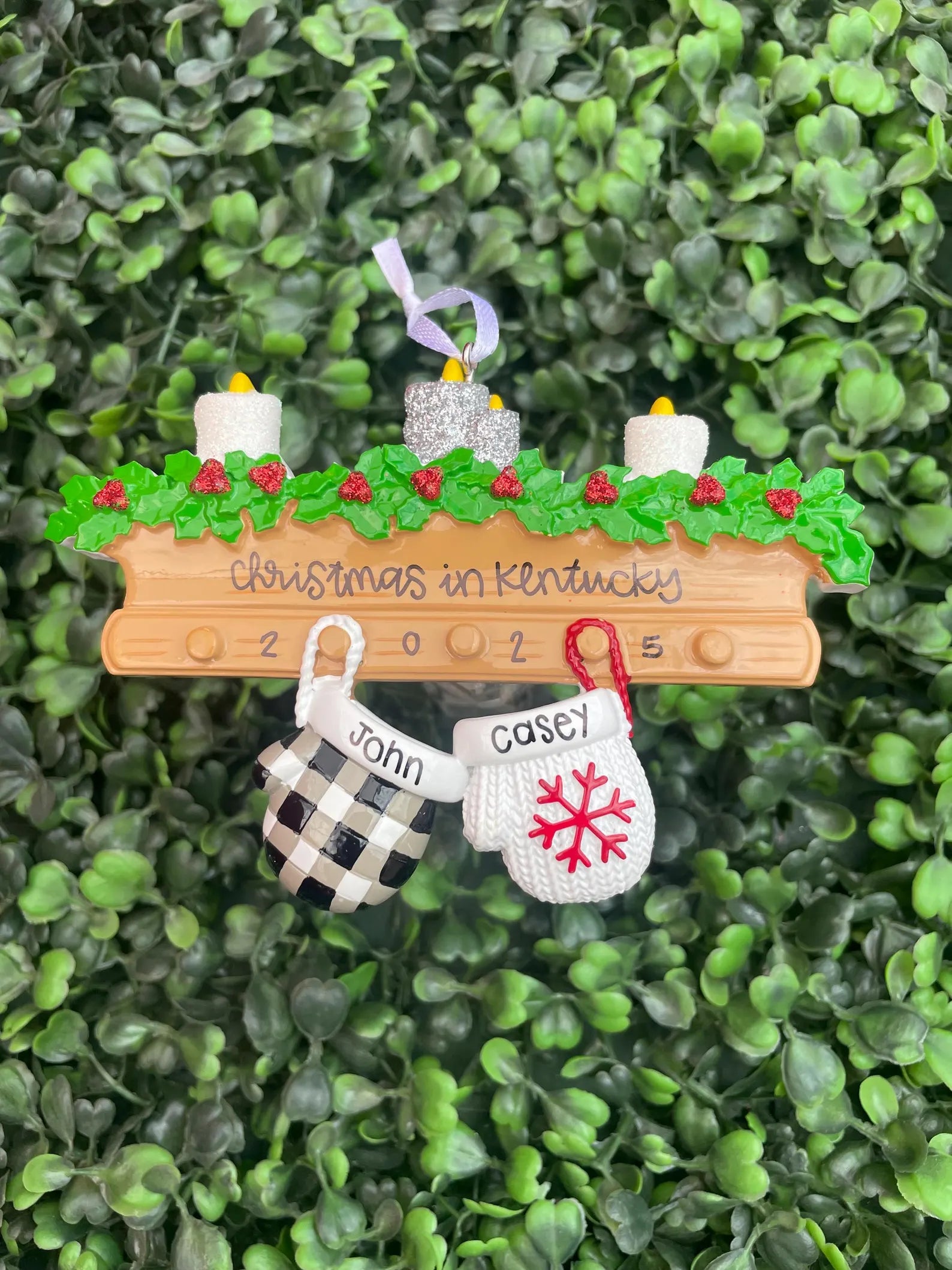 Add a touch of charm to your holiday decor with the Mantle Mittens: Family of Two ornament. This playful keepsake features a pair of cozy mittens that celebrate the special bond between two loved ones. Perfect for hanging on your Christmas tree or mantel, it brings warmth and whimsy to any space. Crafted with attention to detail, these mittens symbolize snug moments and festive fun, making it a delightful addition to your seasonal decorations year after year. Brighten up your home with this cute and heartfelt ornament that invites smiles and cherished memories.