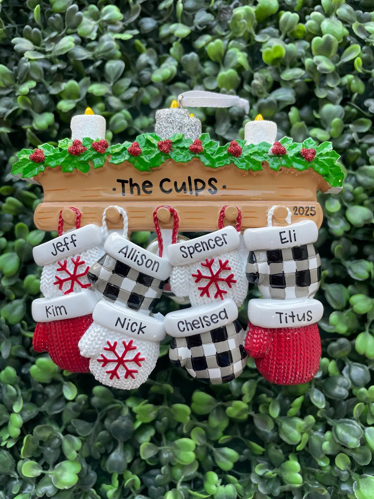 Celebrate family warmth with our Mantle Mittens: Family of Eight ornament! Each cozy mitten represents a loved one, creating a charming display of togetherness on your mantel. Perfect for sparking smiles and holiday cheer, this playful decoration adds a personal touch to your seasonal decor. Crafted with care, it’s an inviting reminder of close-knit bonds and festive fun throughout the holidays.