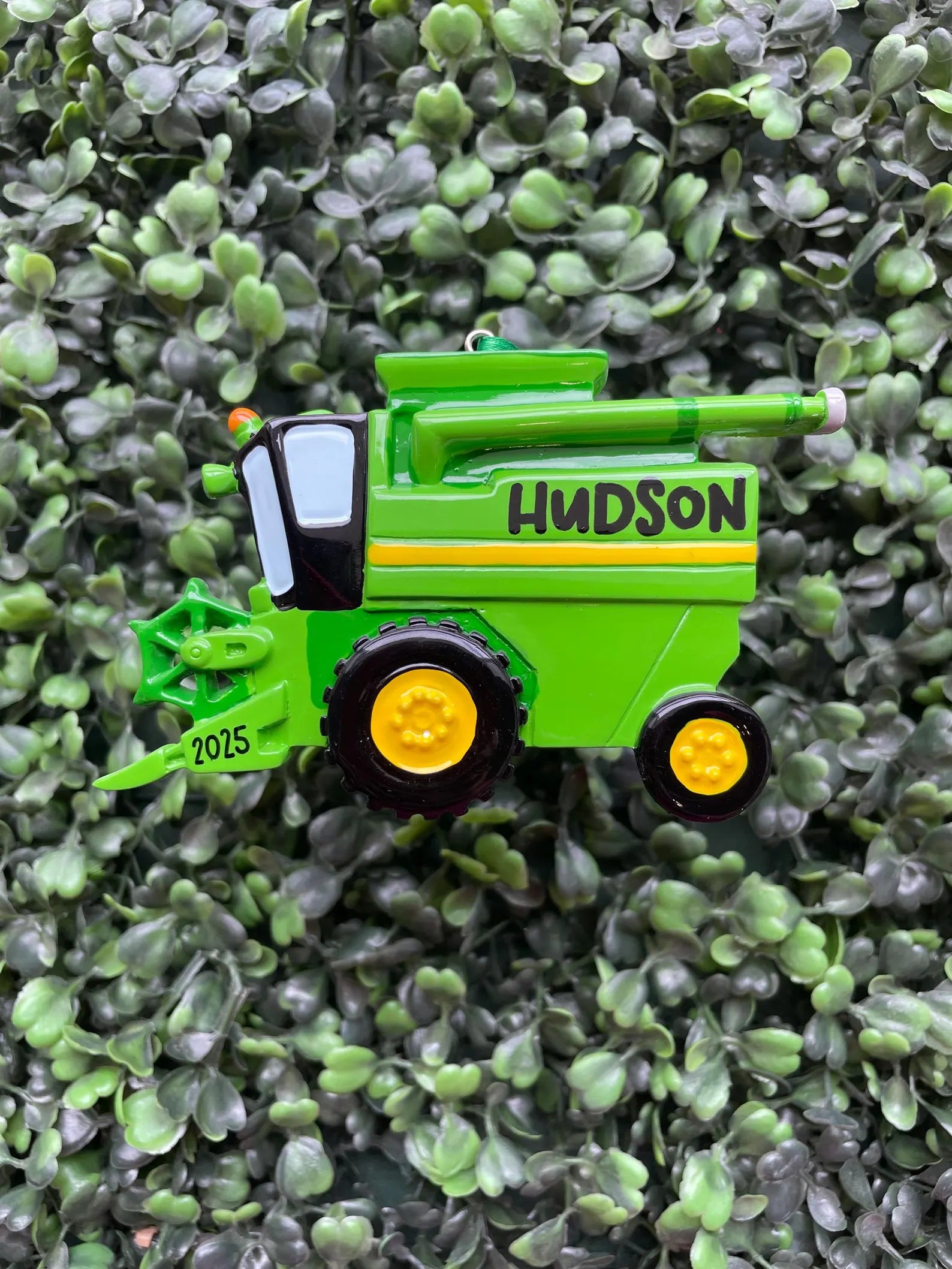 This green combine ornaments is SURE to put a smile across the face of you big farming equipment - loving little one!