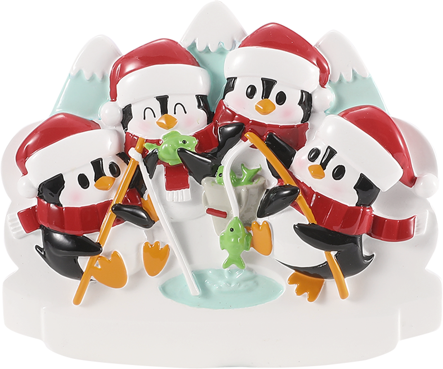 Celebrate the charm of winter with the Penguin Ice Fishers: Family of Four ornament. This playful decoration captures a heartwarming scene of four penguins bundled up and patiently ice fishing together, making it perfect for adding a cozy touch to your holiday decor. Crafted with attention to detail, this little family radiates fun and friendship, bringing joy and whimsy to any space. It's an ideal gift for penguin lovers and a delightful way to celebrate the season with a smile.