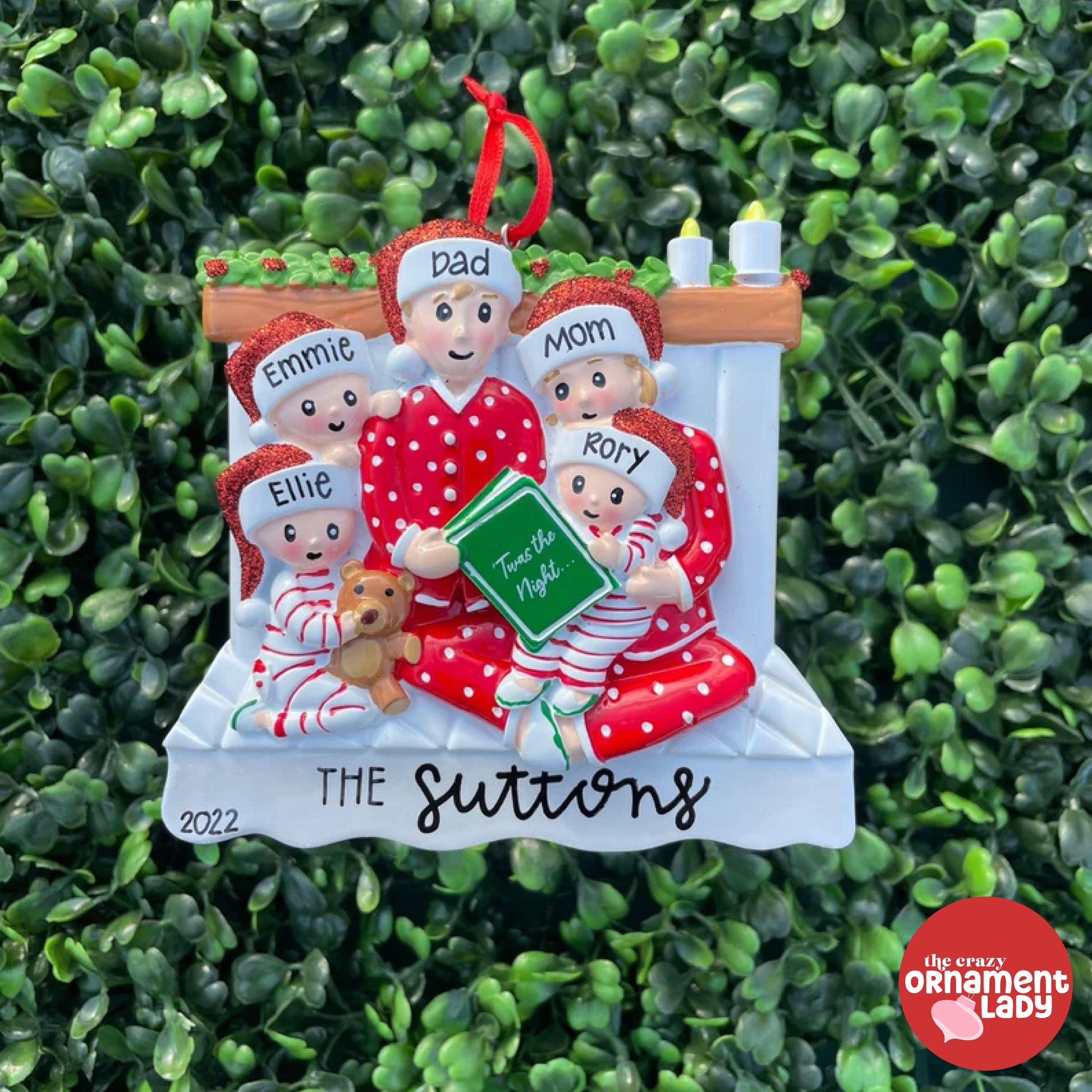 Twas the night before Christmas and this family of five was snuggled up in bed, enjoying a cozy story together. This charming ornament not only adds to your tree's holiday spirit, but also celebrates the warmth of family traditions on Christmas Eve.