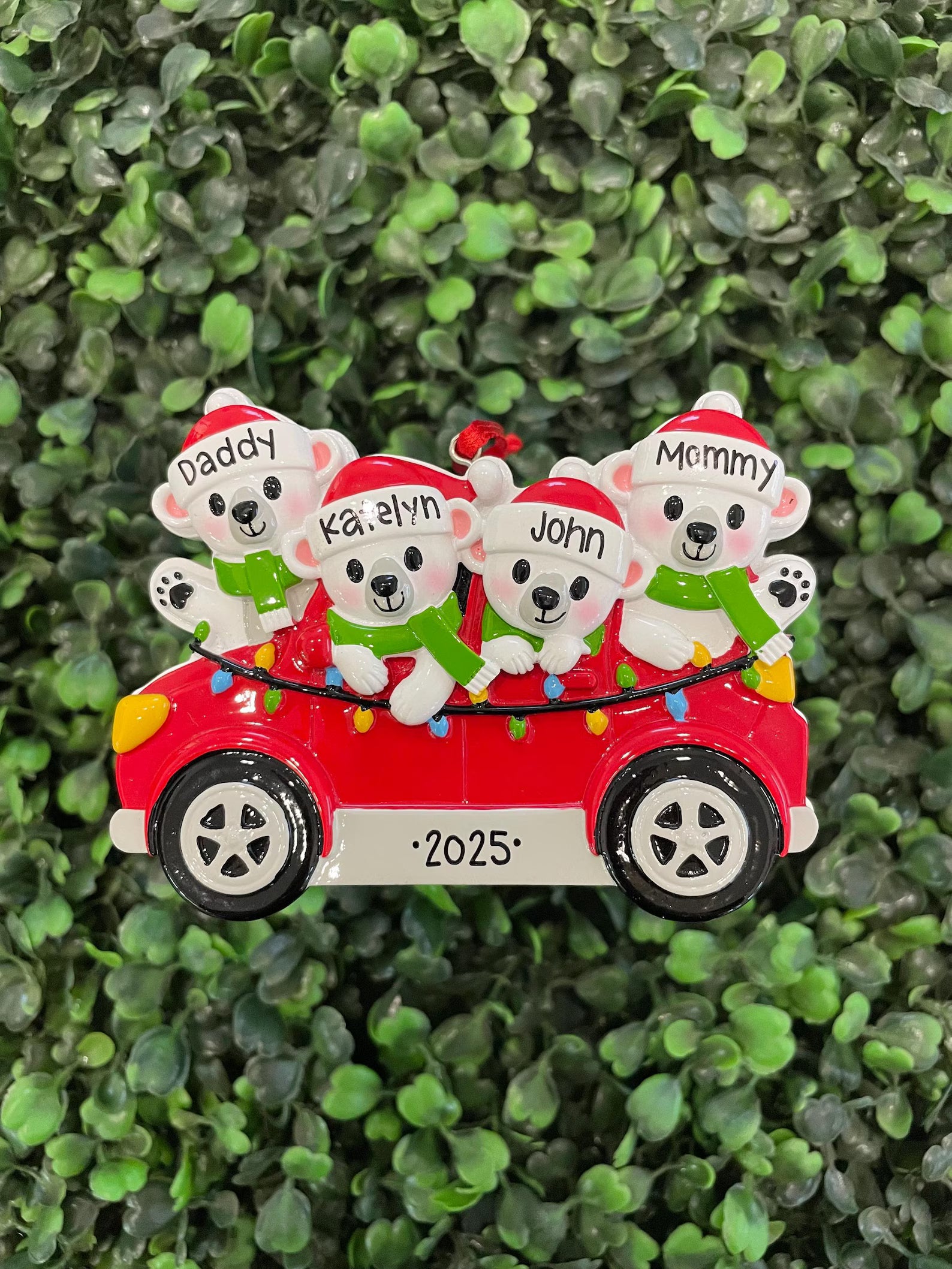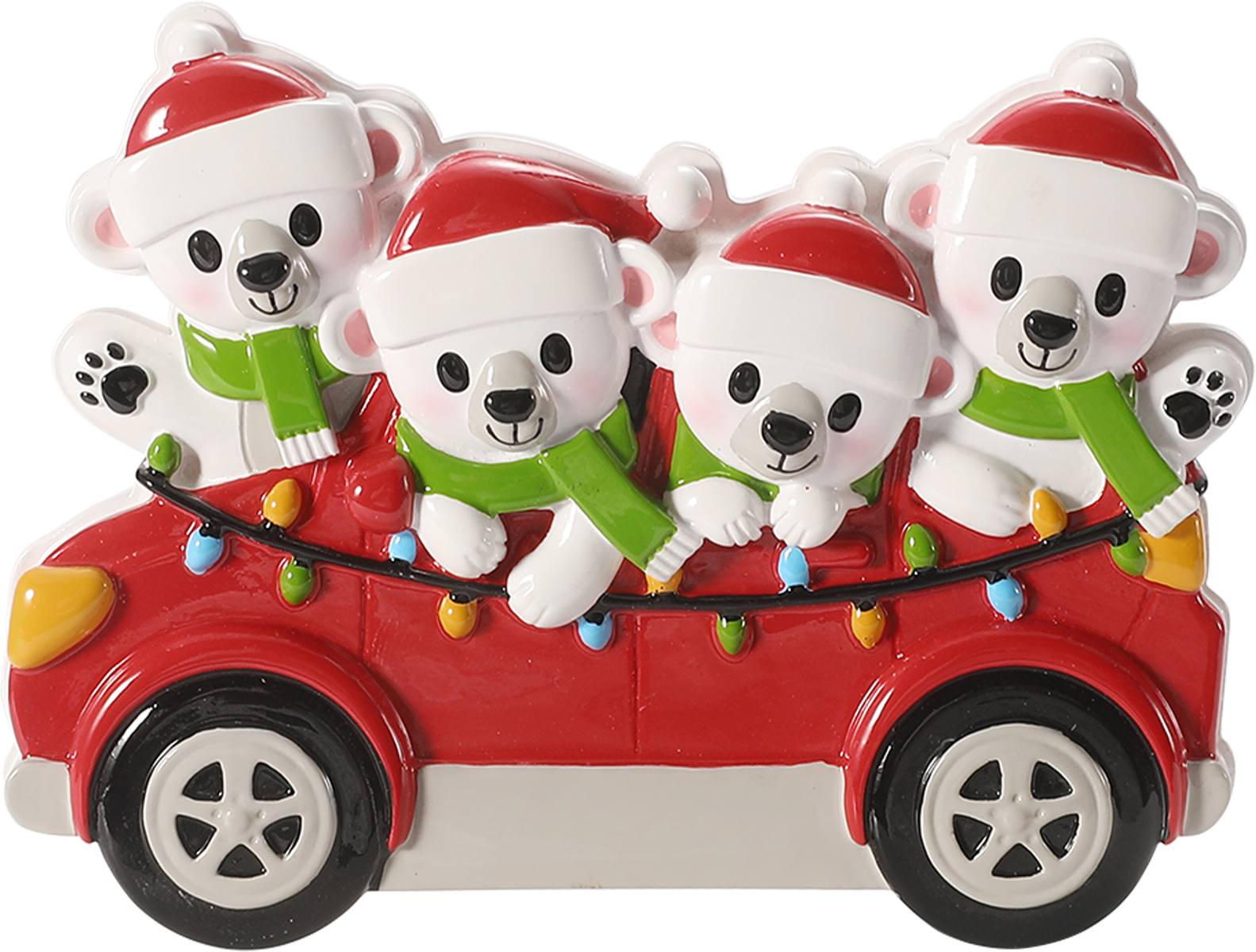 Bring a fun and whimsical charm to your décor with this delightful "Polar Bears in Car: Family of Four" ornament. This playful piece captures an adorable family of polar bears joyfully piled into a cozy car, making it perfect for adding a touch of humor and warmth to your holiday celebrations. Ideal for animal lovers and those who cherish unique decorations, it sparks smiles and spreads festive cheer. Whether as a gift or a special addition to your collection, this ornament brings a heartwarming story to every room. Celebrate family togetherness with this endearing scene that promises to brighten any space.