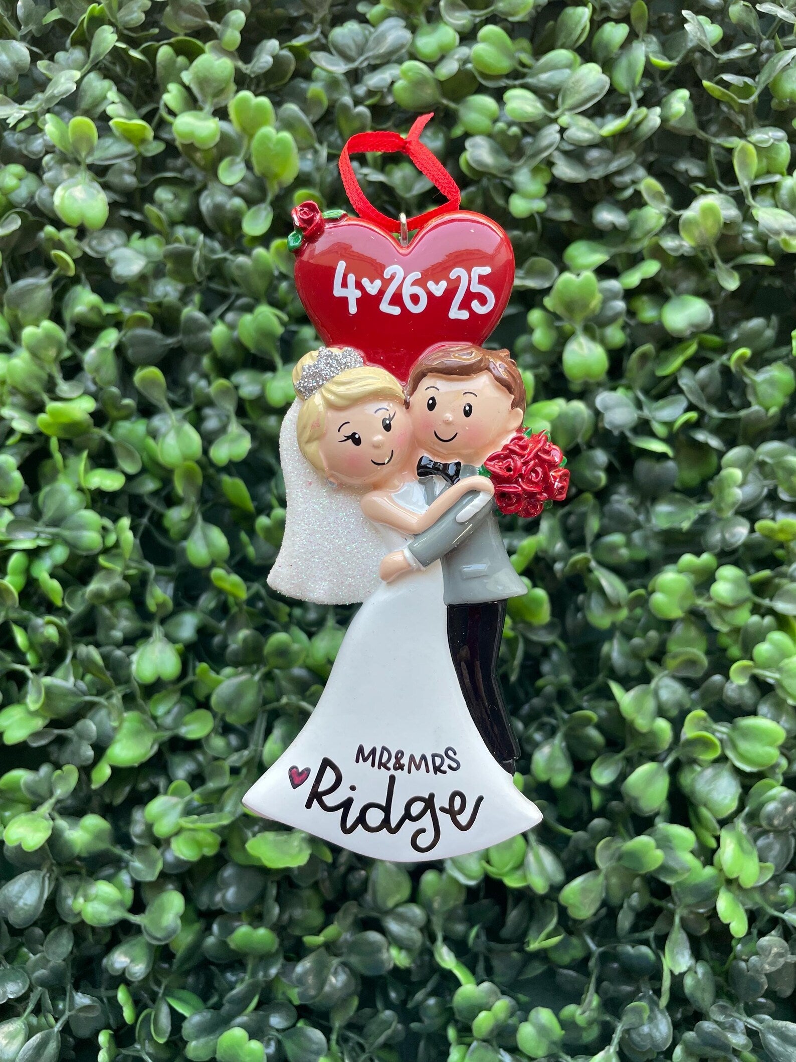 Celebrate the love of a newlywed couple with our personalized wedding ornament. This keepsake ornament is the perfect addition to any holiday tree. Each ornament is lovingly personalized for a truly unique and meaningful gift.